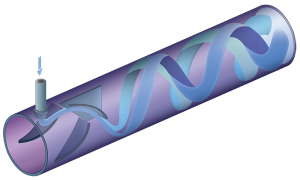 Series 6000 Counter Swirl Rapid Mixer - a shorter laying length with reduced headloss mixer. It features three curved fins welded to a spool interior.